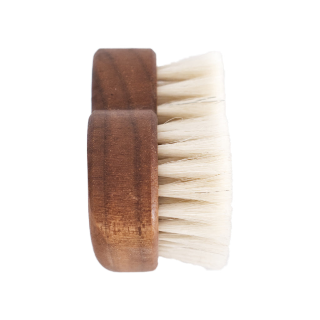 Unsere Haarbürste für Babys und kleine Kinder ist besonders schonend: Die weichen Borsten aus Ziegenhaar gleiten sanft durchs Haar, ohne zu ziepen oder die empfindliche Kopfhaut zu reizen. Sie massiert die Kopfhaut, fördert dabei die Durchblutung und damit das Haarwachstum. Mit unserer Baby- und Kinderhaarbürste wird die tägliche Haarpflege zu einem Ritual der Nähe. Mit nur etwa acht Zentimetern Größe ist sie auch unterwegs ein unauffälliger Begleiter.